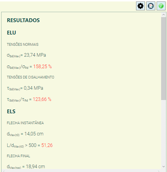 - Deslocamentos a longo prazo, considerando a fluência do material associada à duração dos carregamentos;
