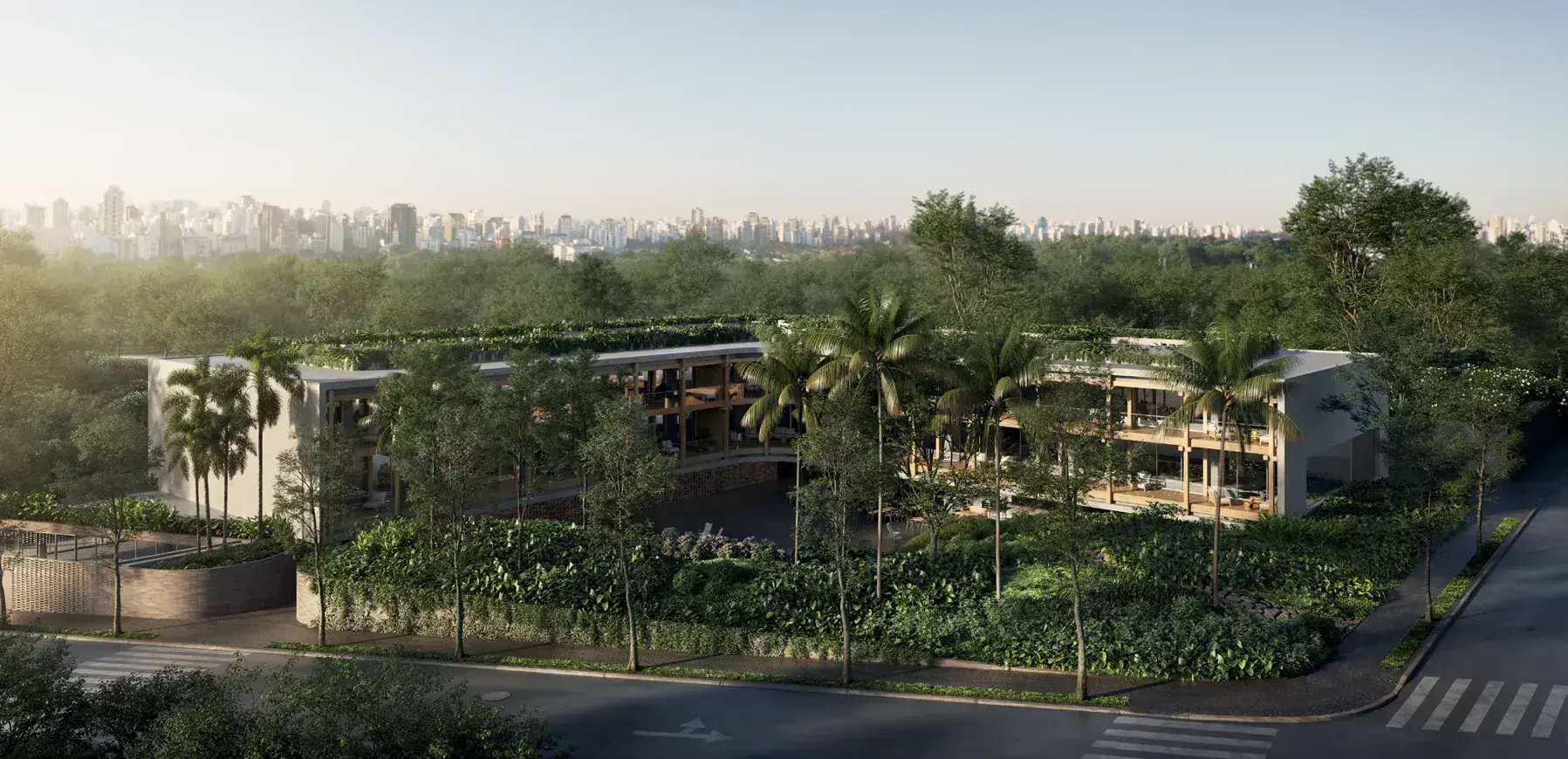Gabriel 1825 is a commercial development located in Jardim Europa, set within a transitional area between the corporate axis of Avenida Faria Lima and the more tree-lined urban fabric of the neighborhood. The project proposes an uncommon horizontal layout for office buildings, organized around a central plaza of approximately 1,500 m², which structures circulation, gathering spaces, and the relationships between individual office units.
