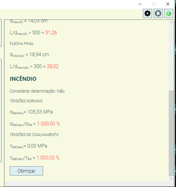 - Tensões de cisalhamento (rolling shear) dos painéis em situação de incêndio.