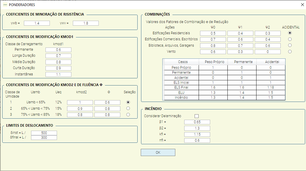 - Deslocamentos a longo prazo, considerando a fluência do material associada à duração dos carregamentos;