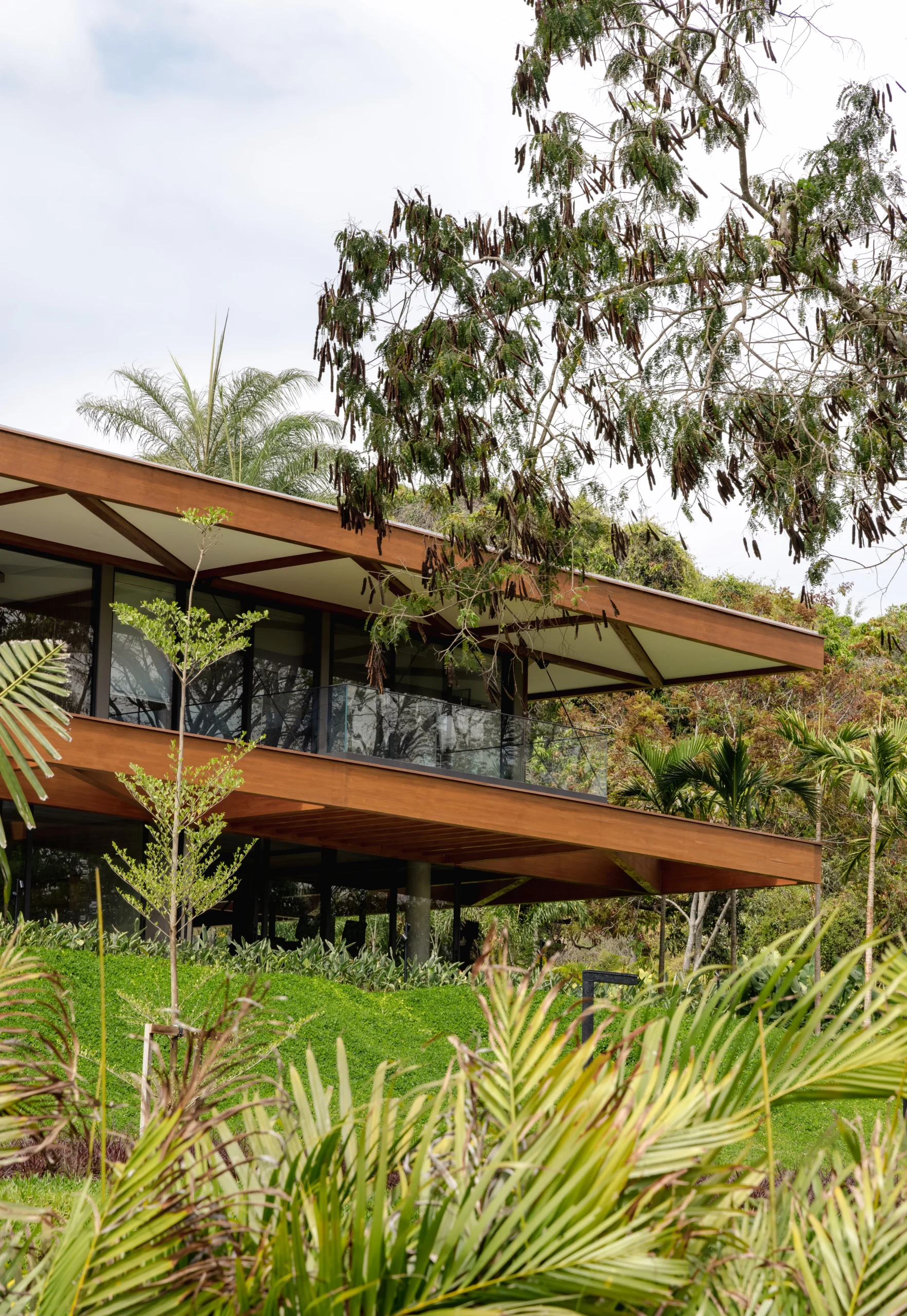 Distribuída em dois pavimentos, a casa organiza os espaços sociais no nível inferior, com integração direta entre interior, varanda e piscina, enquanto o pavimento superior concentra a área íntima, com todos os ambientes voltados para a vista. Mais do que um volume construído, a Casa Tangram propõe uma relação contínua com a paisagem, explorando luz natural, ventilação e a presença da madeira para criar espaços mais confortáveis e conectados ao entorno.