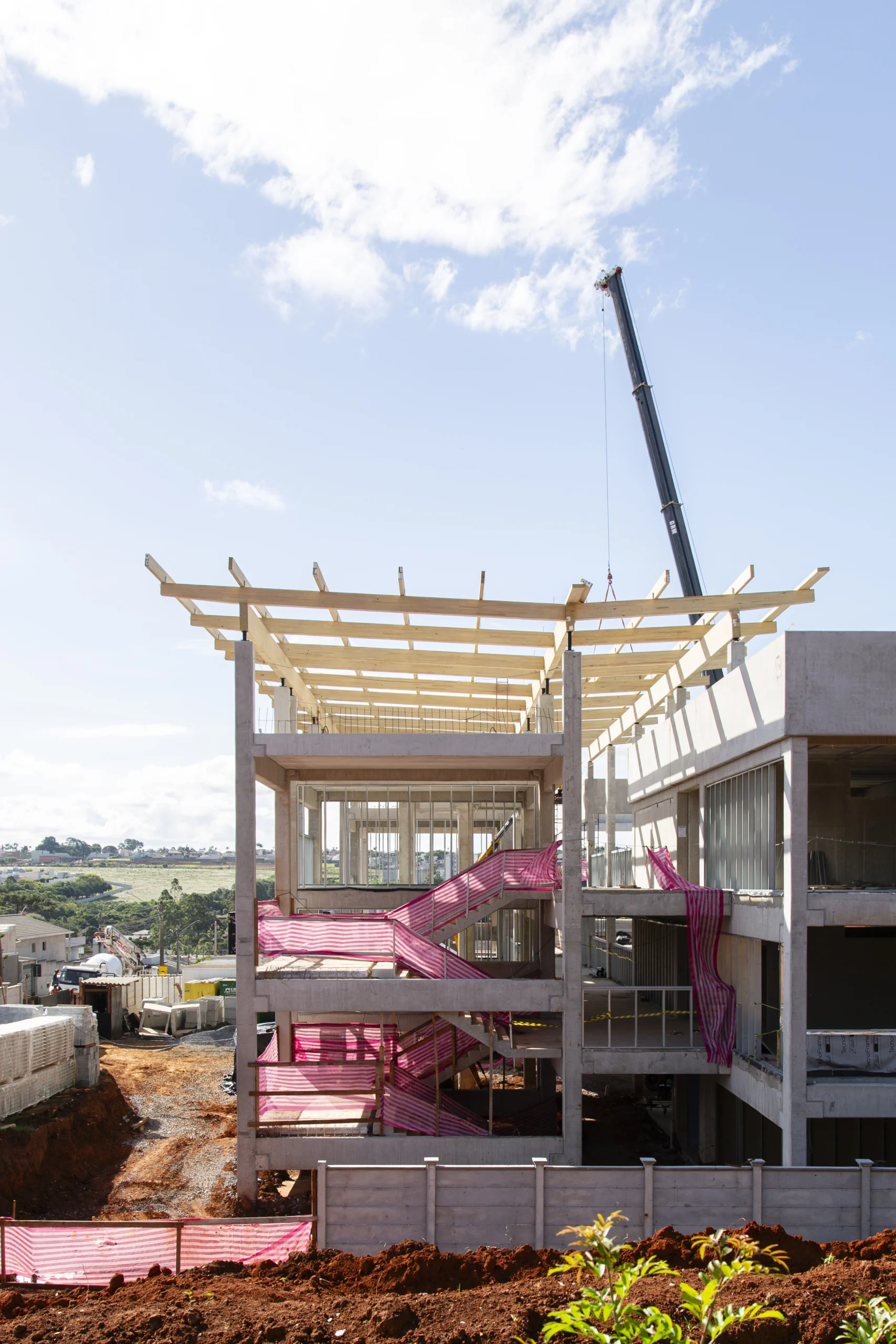 O programa adota um modelo construtivo misto, que combina estrutura convencional com cobertura industrializada em madeira engenheirada. As peças chegam ao canteiro pré-fabricadas e prontas para montagem, com prazo médio de três semanas por unidade — reduzindo interferências no entorno, a geração de resíduos e o tempo total de obra. Nesta primeira fase, oito escolas estão em execução nos municípios de Itapetininga, São José dos Campos, Aguaí, São João da Boa Vista, Limeira, Atibaia, Salto de Pirapora e Leme, totalizando 272 m³ de madeira engenheirada aplicados.