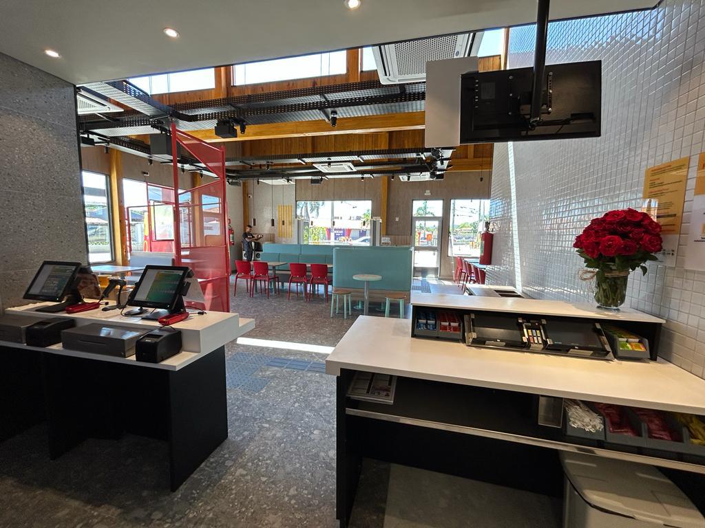 O McDonald’s de Búzios, em Manguinhos, utiliza estrutura em CLT e MLC fornecida pela Urbem, combinando simplicidade arquitetônica, desempenho técnico e eficiência construtiva.